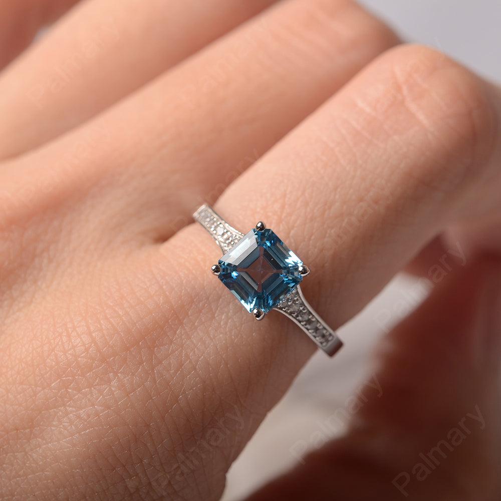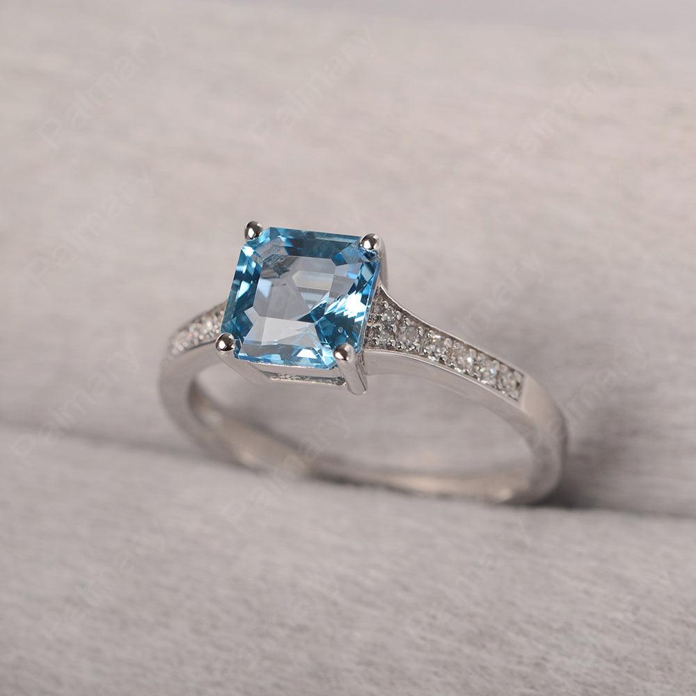 Asscher Cut Swiss Blue Topaz Engagement Rings - Palmary